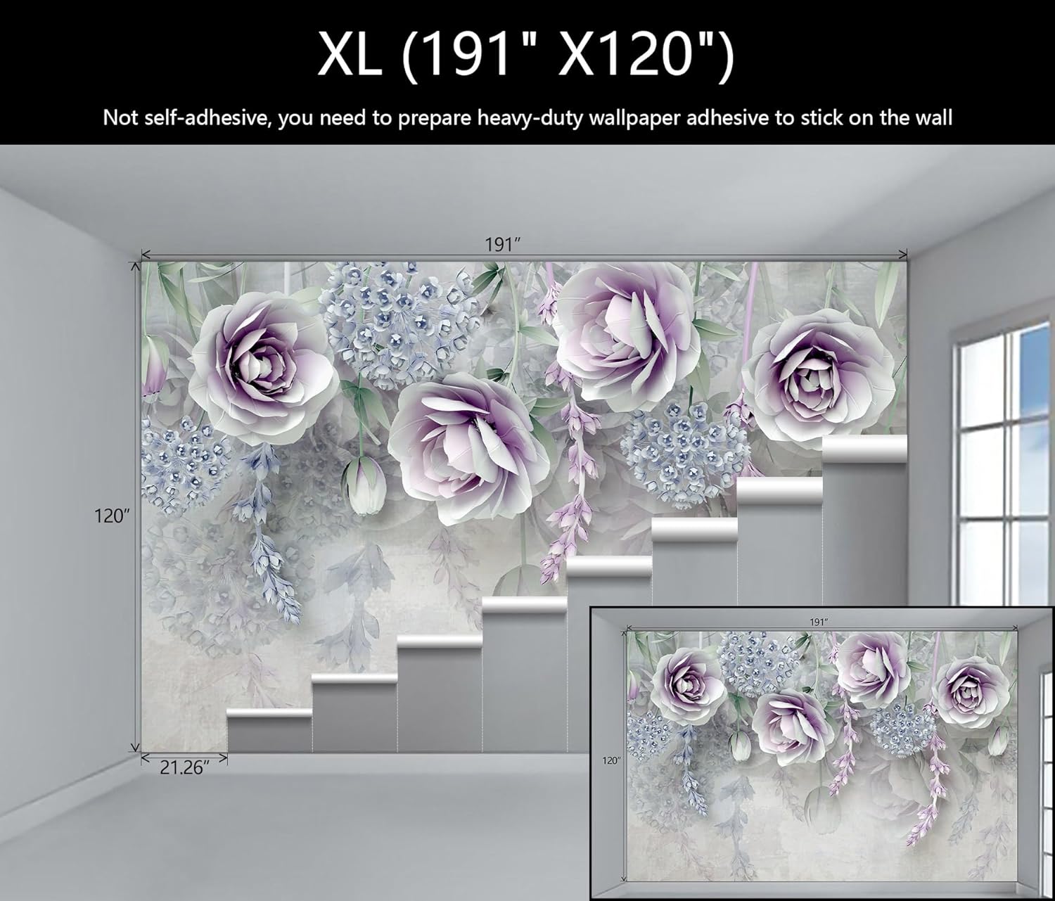 WFBHUA-Purple Rose Floral 3D Wallpaper Mural Modern Flower Leaf Wallpaper for Bedroom Wall Murals Decoration(Not Peel and Stick)