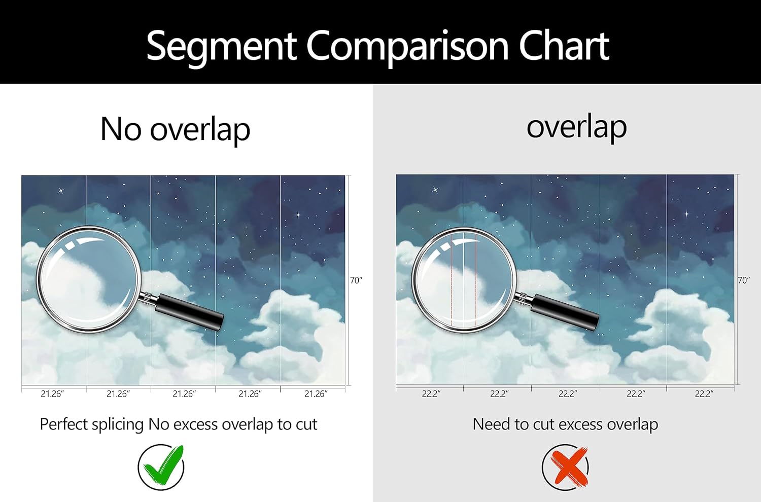 - Mural Size: The total size of this mural wallpaper is 106" x 70" / 270CM x 178CM (W x H), cut into 5 pieces, each measuring 21.26" x 70", for easy installation.