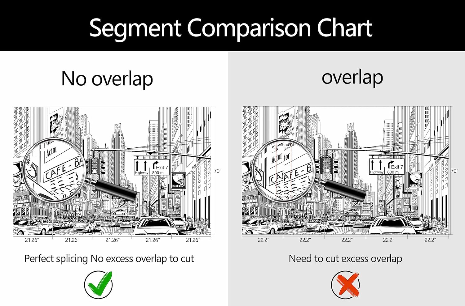 - Mural Size: The total size of this mural wallpaper is 106" x 70" / 270CM x 178CM (W x H), cut into 5 pieces, each measuring 21.26" x 70", for easy installation.