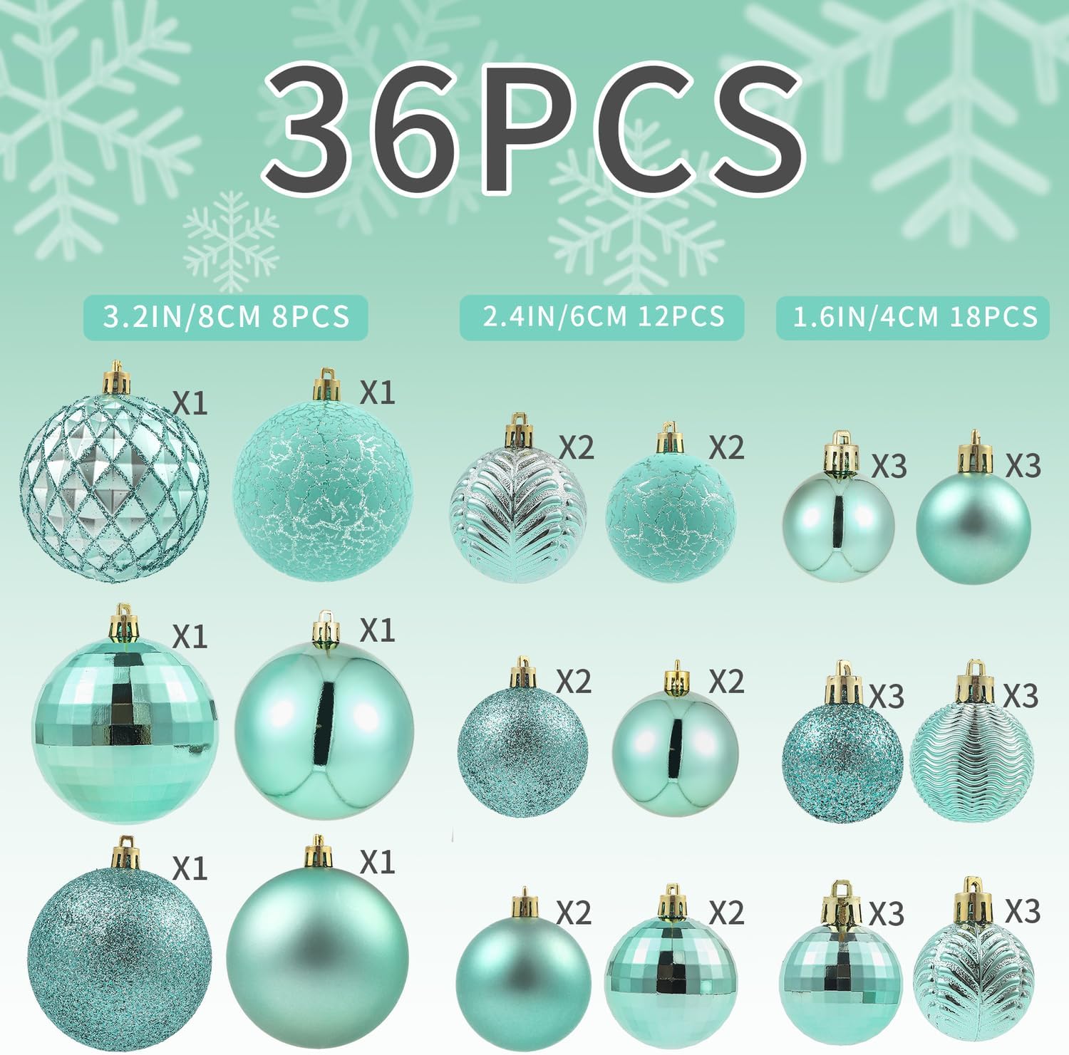 LANGXUN 36pcs Peacock Christmas Tree Decorations Balls, Bolas De Navidad, 2025 Christmas Decor, Indoor Outdoor Shatterproof Christmas Ornaments, Xmars Party Wedding Suppiles