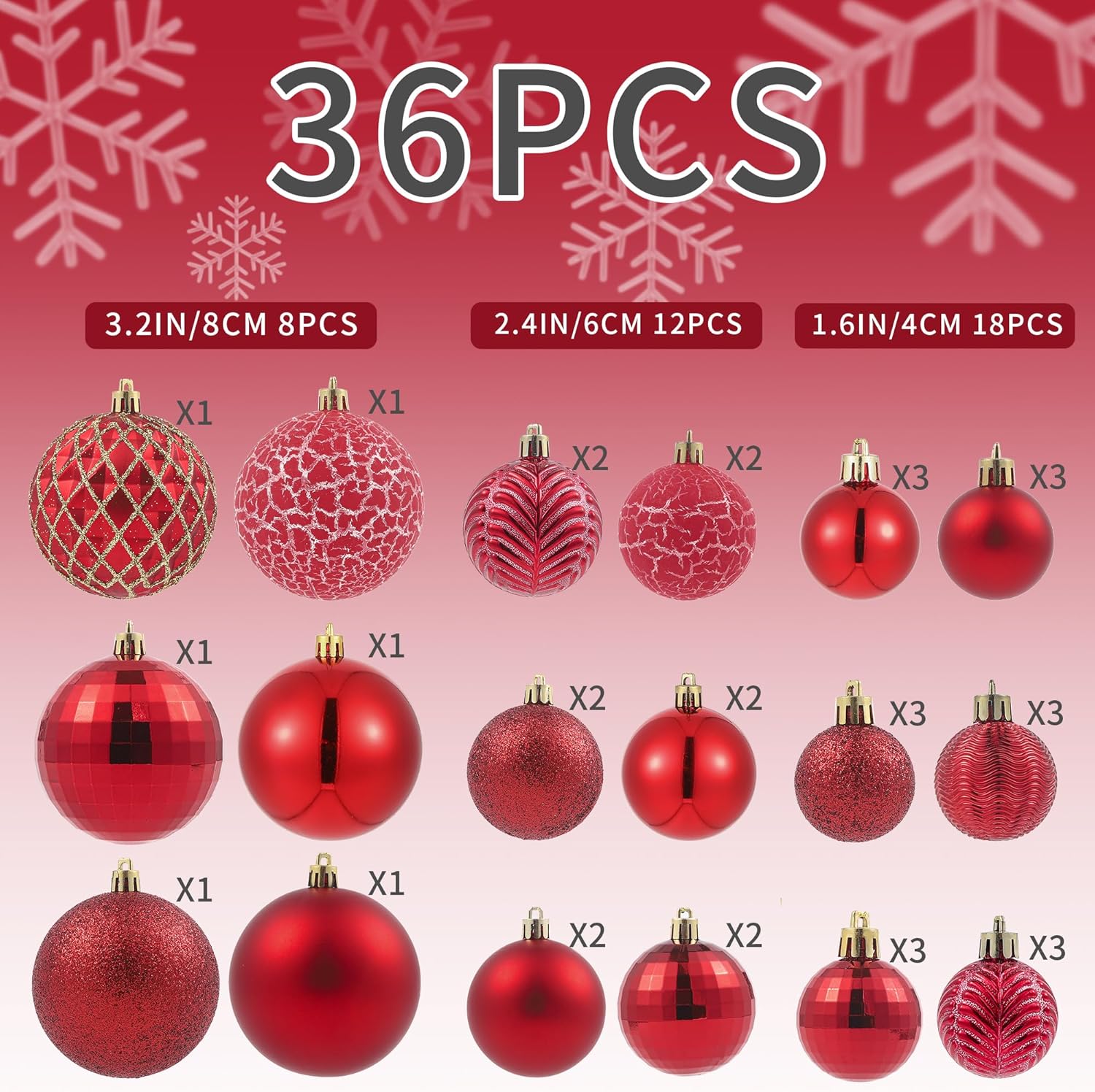 LANGXUN 36pcs Red Christmas Tree Decorations Balls, Bolas De Navidad, 2025 Christmas Decor, Indoor Outdoor Shatterproof Christmas Ornaments, Xmars Party Wedding Suppiles