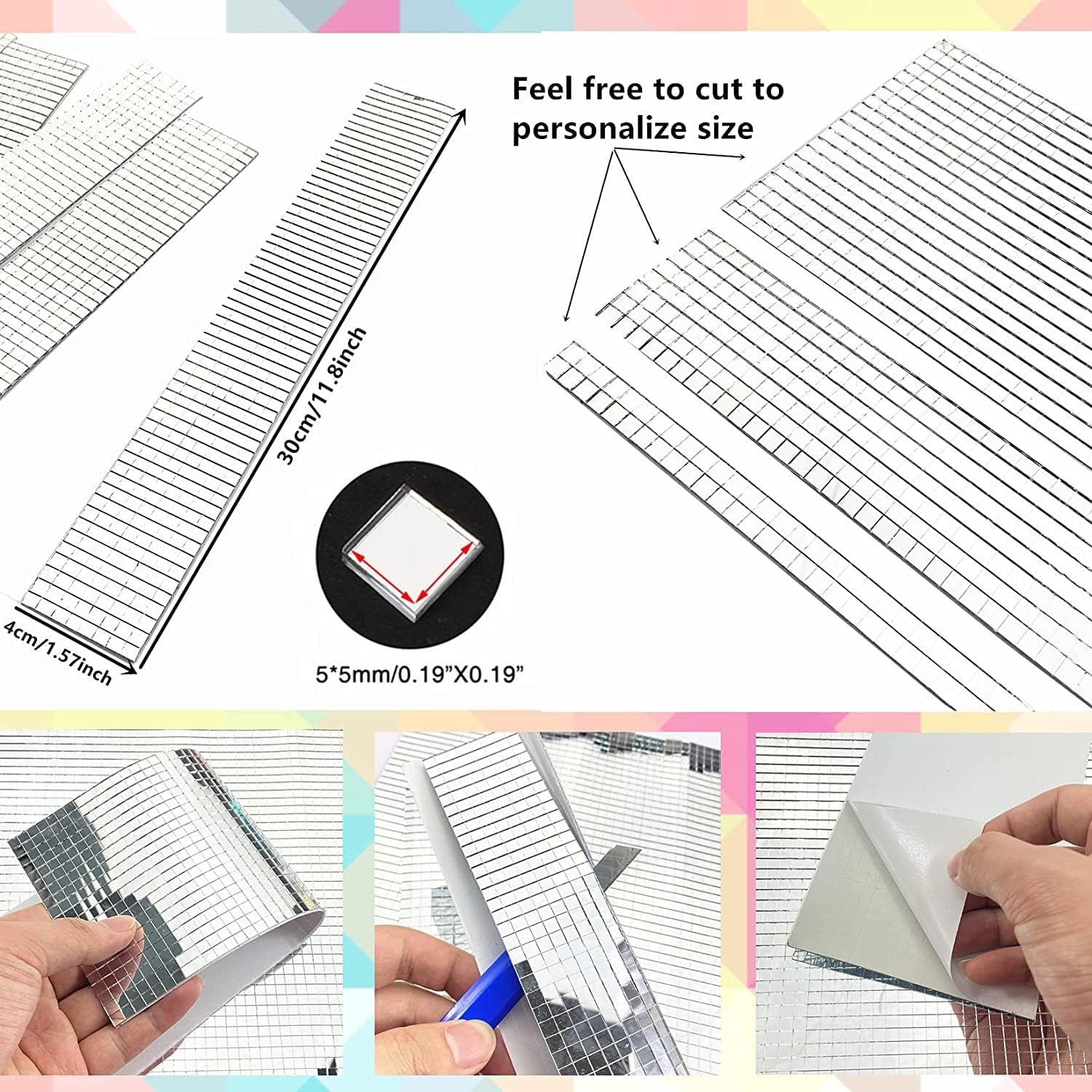 - Quantity : A set comes with 1 sheet of self-adhesive mirror mosaics,size of each sheet is 80 mm x 30 mm.2400 small pieces in total.Or with 2 sheets of 10 mm x 30 mm.