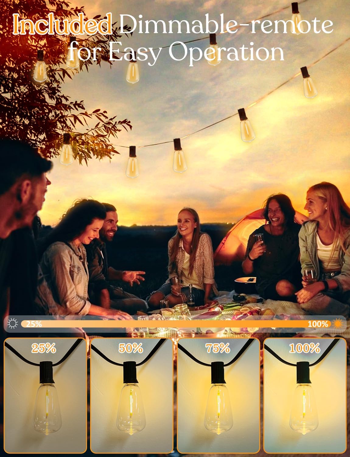 200FT Outdoor Lights for Patio – Dimmable String Lights for Outside with Remote – LED Hanging Lihgts Waterproof Shatterproof ST38 Edison Bulbs for Backyard Cafe Bistro Porch Christmas Party