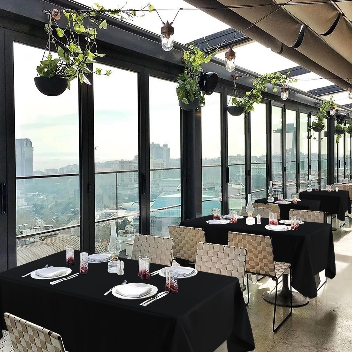 sancua 10 Pack Black Tablecloth 60 x 84 Inch, Rectangle Table Cloth for 4ft Tables - Stain and Wrinkle Resistant Washable Polyester Table Cover for Dining Wedding Banquet Party Buffet Restaurant