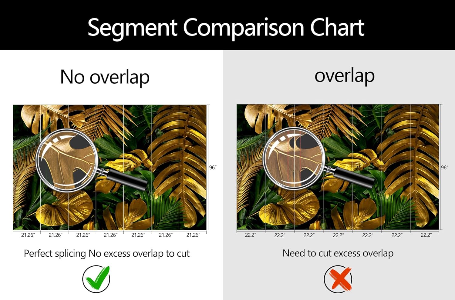 - Mural Size: The total size of this mural wallpaper is 149" x 96" / 378CM x 244CM (W x H), cut into 7 pieces, each measuring 21.26" x 96", for easy installation.