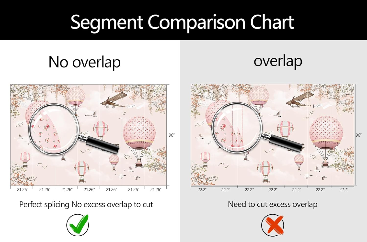 - Mural Size: The total size of this mural wallpaper is 149" x 96" / 378CM x 244CM (W x H), cut into 7 pieces, each measuring 21.26" x 96", for easy installation.
