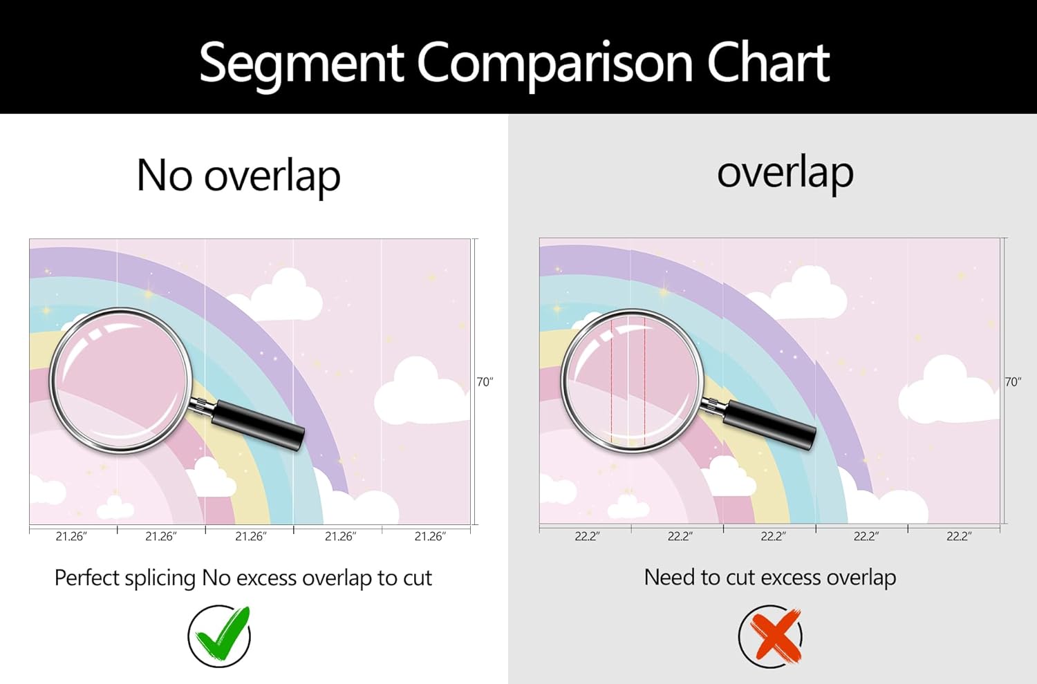 - Mural Size: The total size of this mural wallpaper is 106" x 70" / 270CM x 178CM (W x H), cut into 5 pieces, each measuring 21.26" x 70", for easy installation.