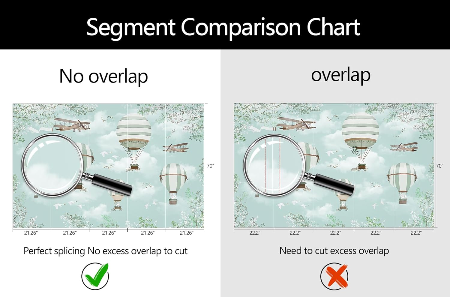 - Mural Size: The total size of this mural wallpaper is 106" x 70" / 270CM x 178CM (W x H), cut into 5 pieces, each measuring 21.26" x 70", for easy installation.