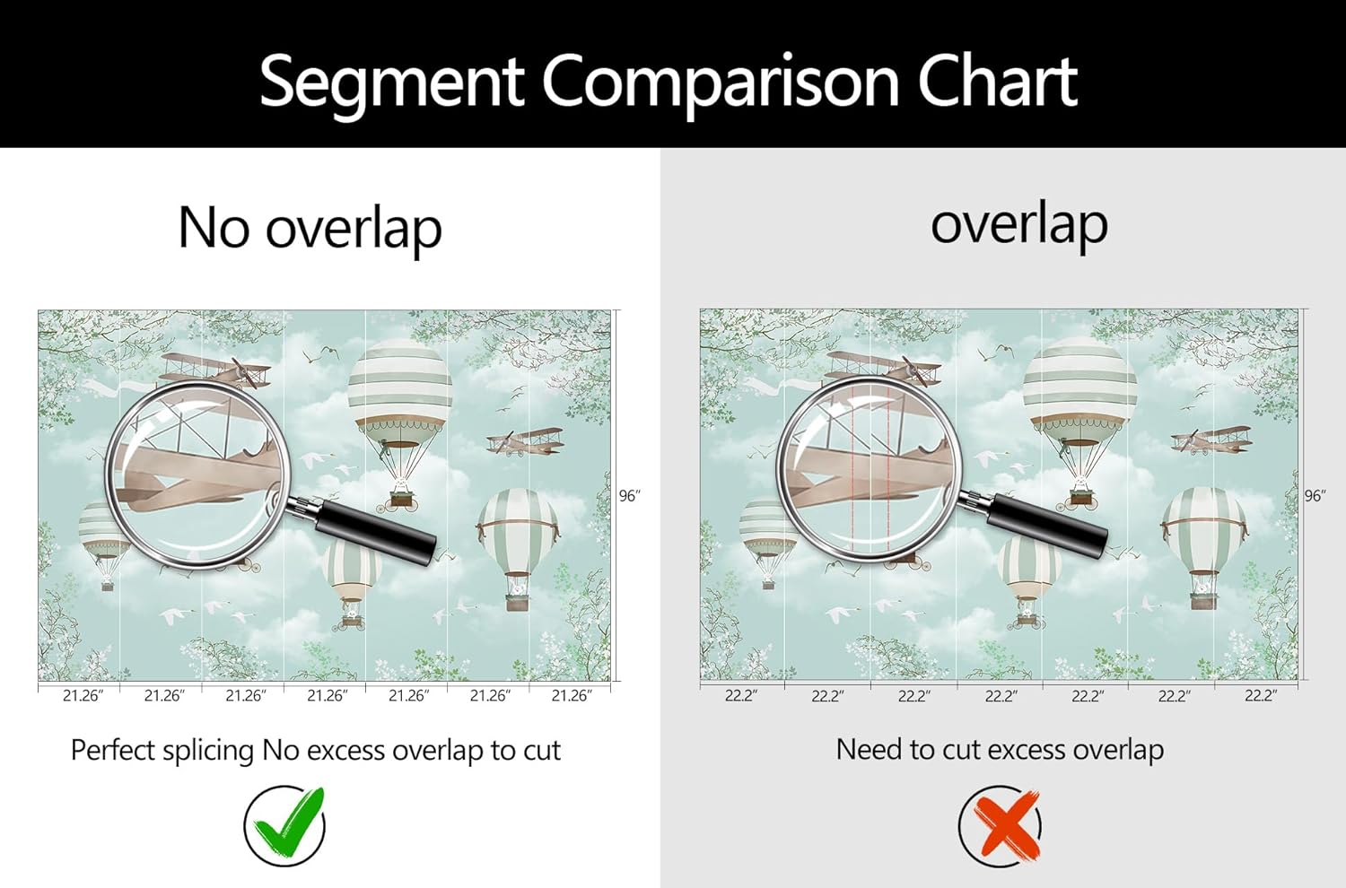 - Mural Size: The total size of this mural wallpaper is 149" x 96" / 378CM x 244CM (W x H), cut into 7 pieces, each measuring 21.26" x 96", for easy installation.