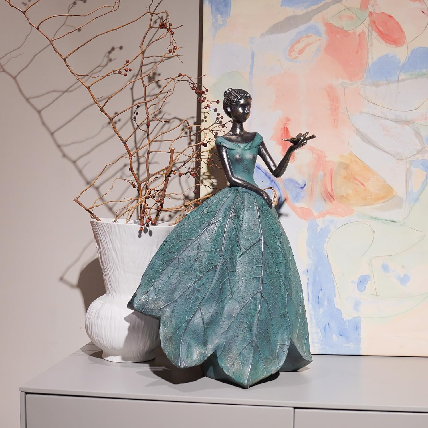 - Fairy Statue: Do you think your garden is too drab? Our leaf Angel girl statue with dragonfly product is originally designed by the designer. The skirt is in the shape of a leaf with the delicate texture of a leaf, which looks very artistic. It can add a different aesthetic feeling to your room or garden.