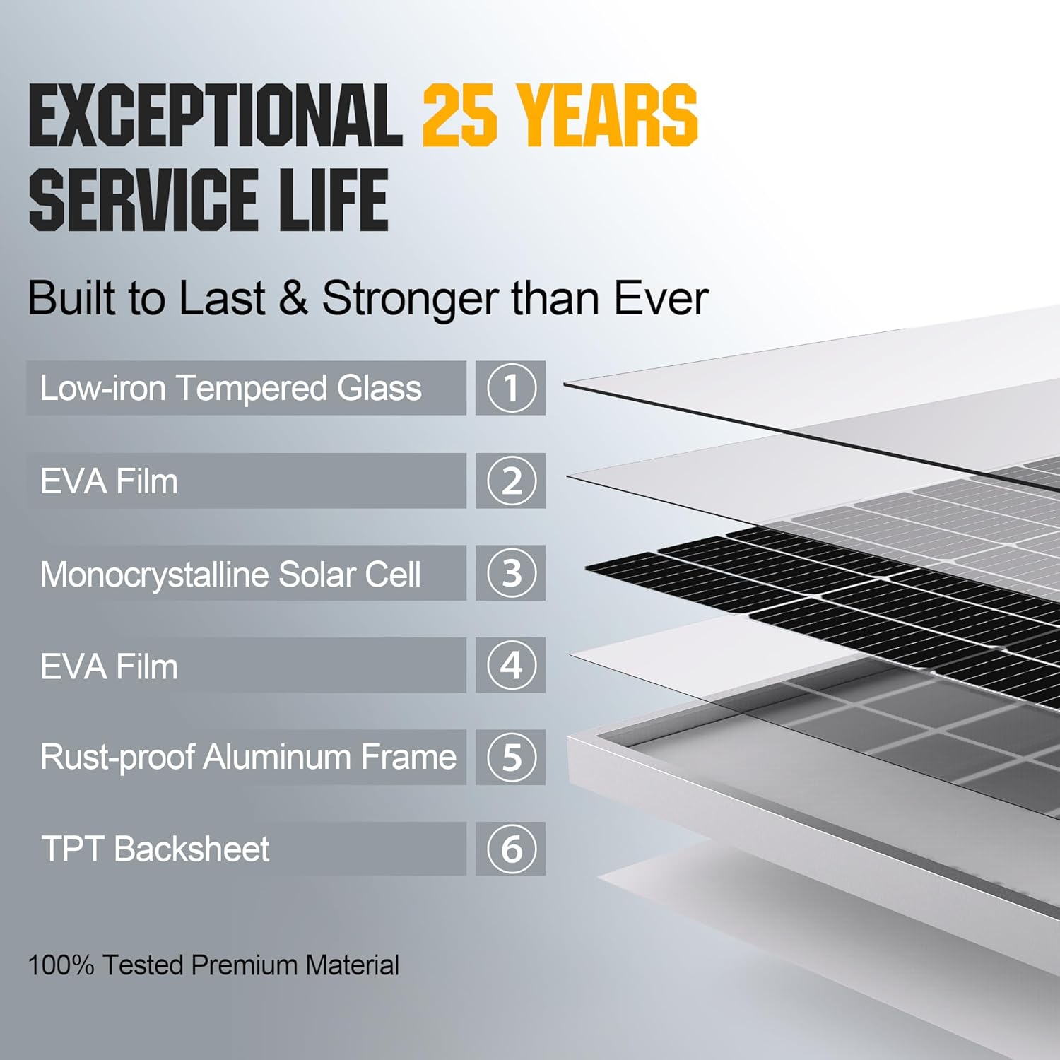 - 【Dependable Customer Support】- This 200w solar panel is backed by a 25-year power output assurance and a 5-year material and workmanship. Additionally, our 24/7 customer service team is available to address any inquiries or issues you might have.
