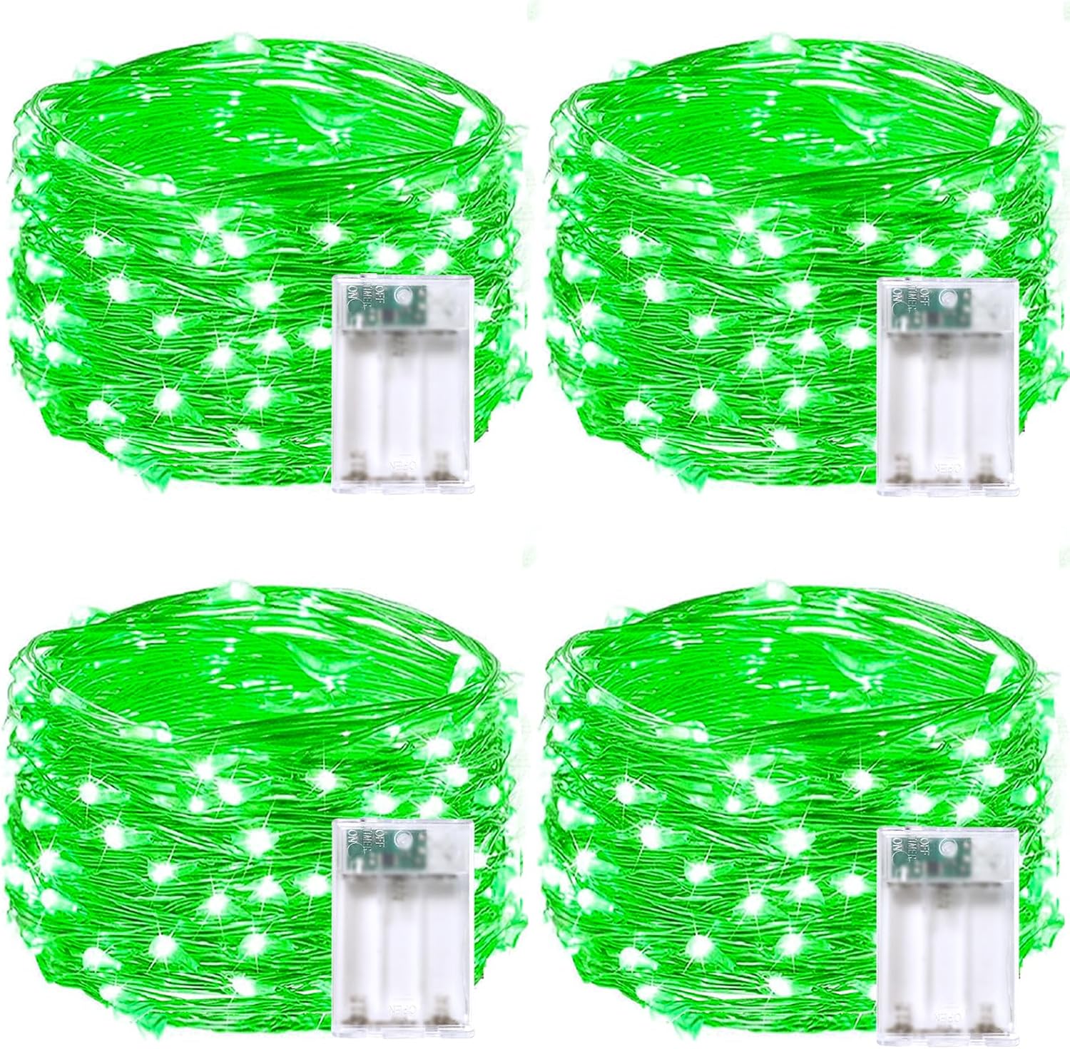 4 Pack 50 LED Fairy Lights Battery Operated with Timer, 16FT Waterproof Halloween Battery Lights Outdoor Indoor Starry Mini Led String Light for Halloween parties Bedroom Home DIY Decoration (Green)