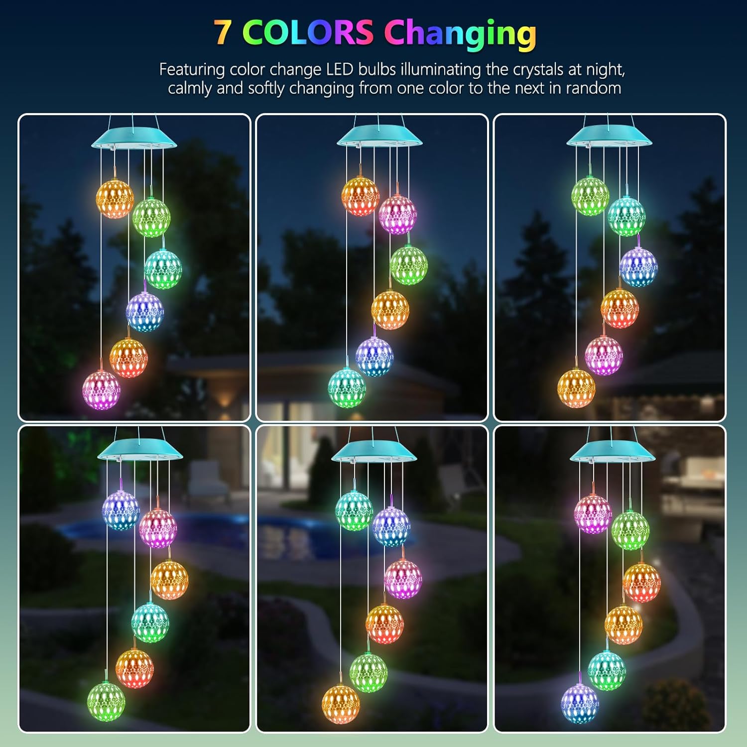 - 【Top Gift Idea】This lovely solar wind chimes will give a surprise to your friends and families. Top gift choice for Easter, birthday, mother day, Thanksgiving, Christmas, Memorial day. Color changing led balls will make romantic and enjoyable atmosphere. If any problems about products, please feel free to contact us via Amazon email box.