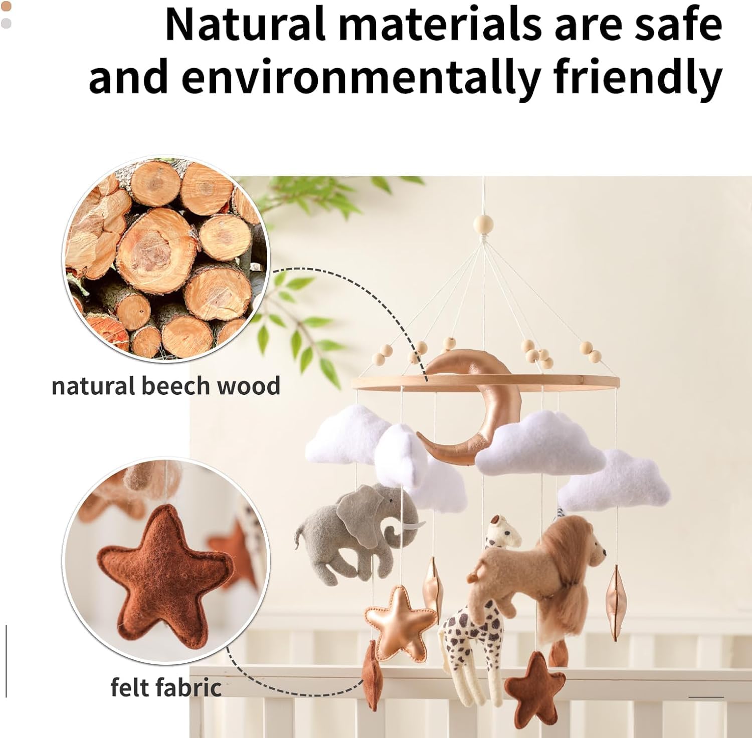 - Unique and Minimalist Design: Crafted with child safety in mind, our Baby Mobile for Crib is made from safe materials. The intricate handcrafted design and wood elements combine to create a unique and attractive decor piece for your baby's crib