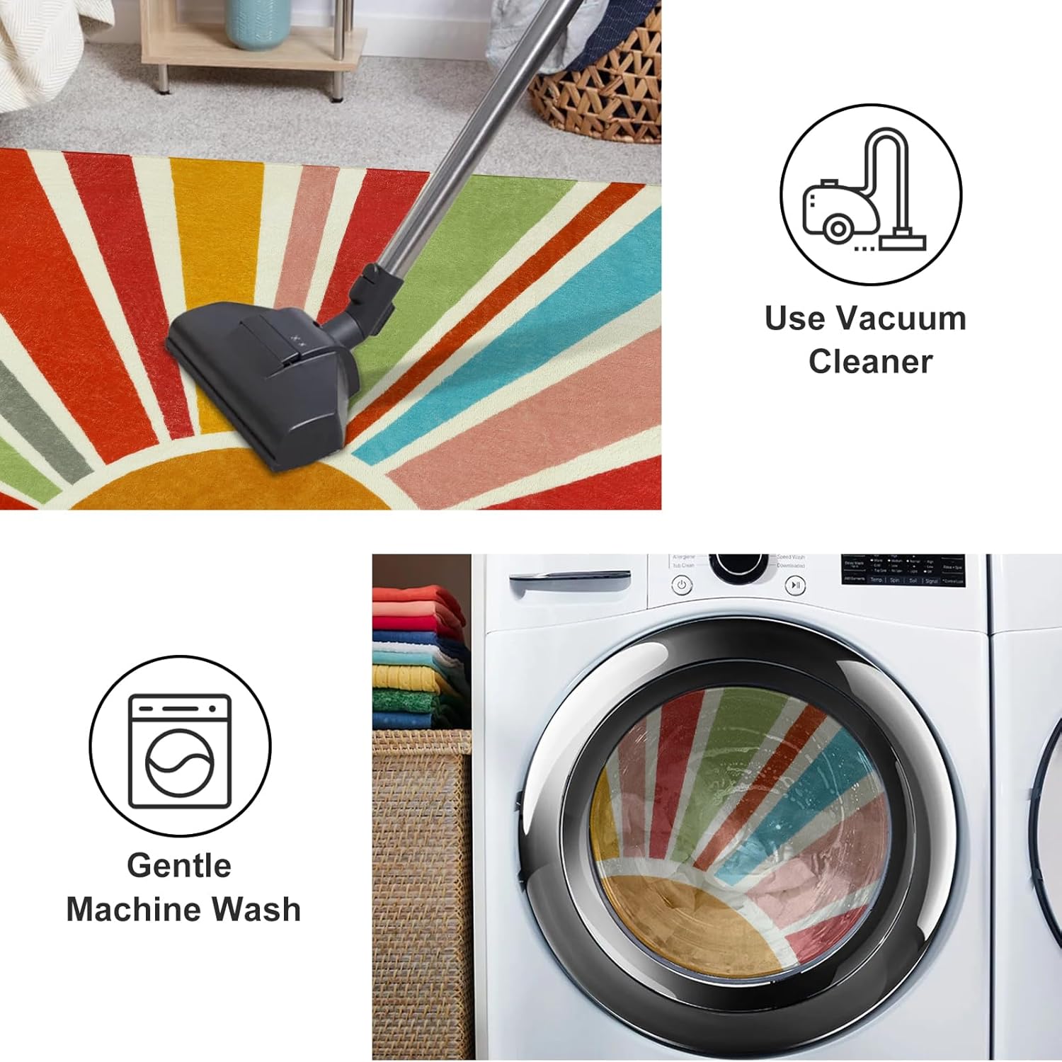 - Pattern Design:The 5x7 kids rugs features a lovely colorful sun pattern. As a home decor, it creates a warm and lively atmosphere and light up your home.