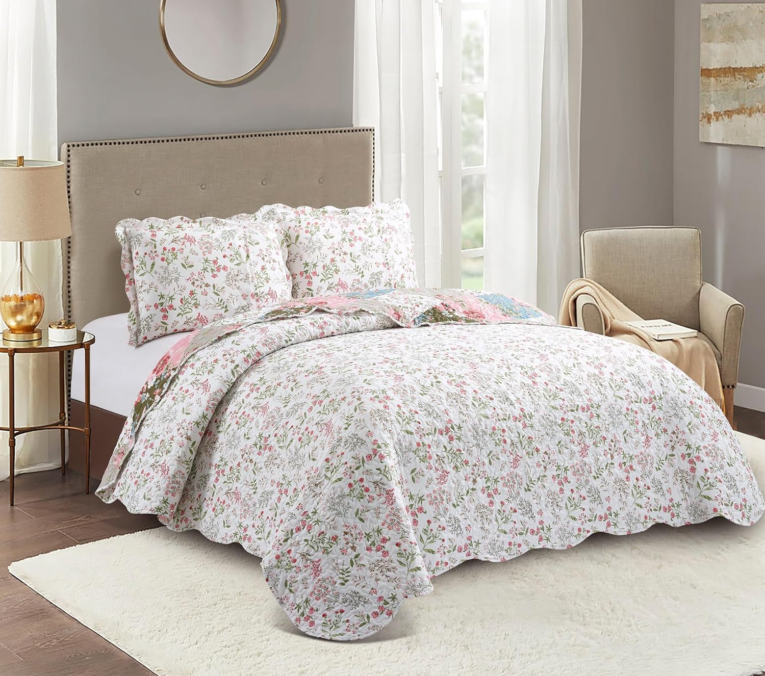 - Multiple options are available: quilt set Twin, quilt set Full/Queen, quilt set King. Matching decorative ruffle pillow shams, couch covers and couch armrest organizer are available for additional purchase.