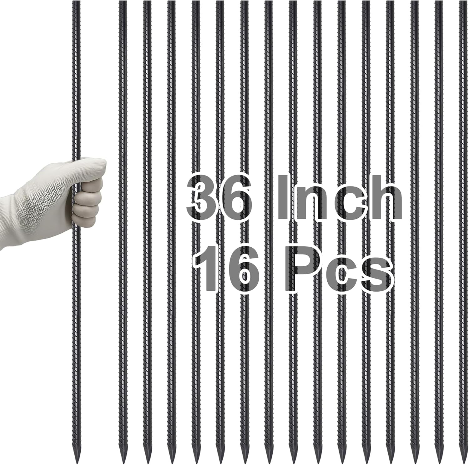 VVOKGO Rebar Stakes 36 Inch 16-Pack Concrete Form Stakes Heavy Duty Straight Ground Anchors, 3/8" Diameter Metal Steel Spikes with Chisel Point End for Plant Support, Garden Border,Landscape Edging
