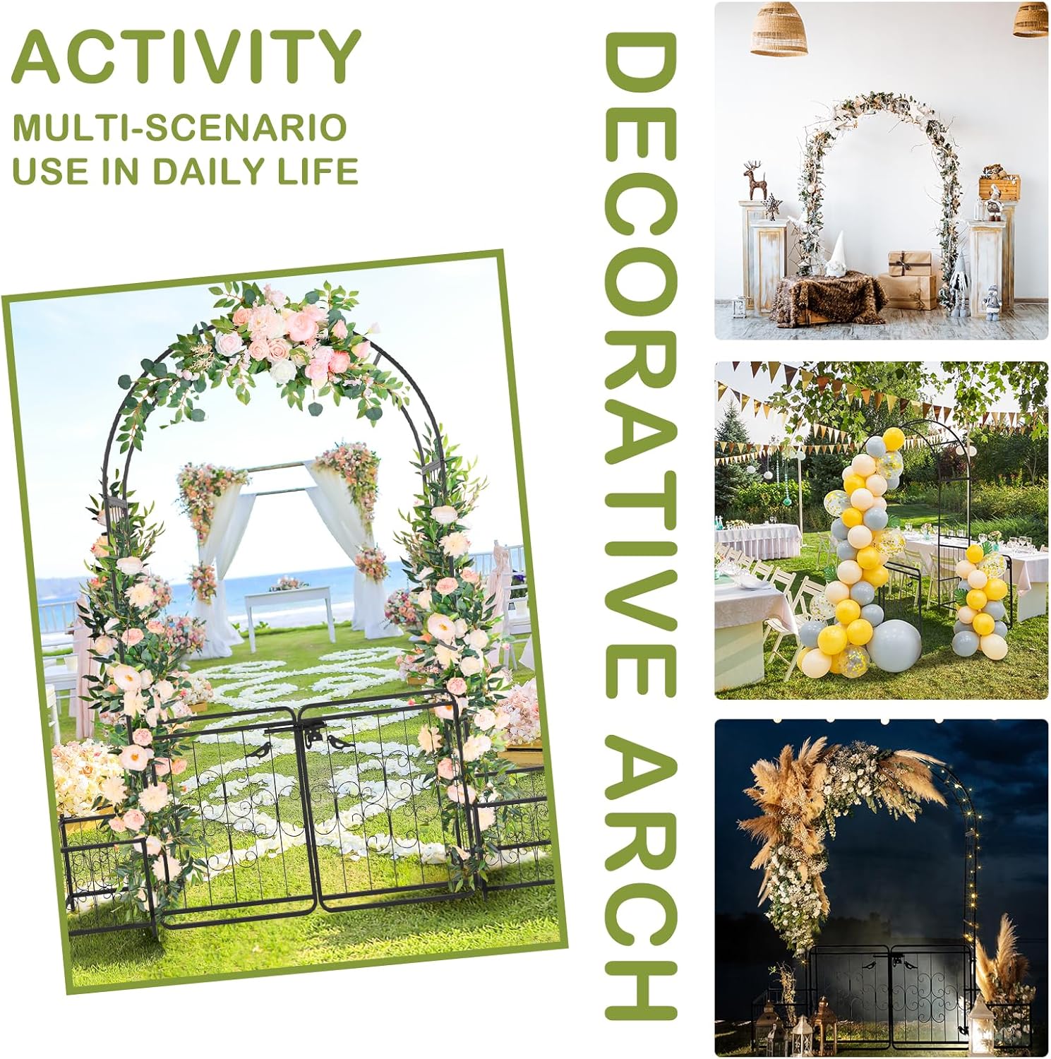 - 【UPGRADE STABILITY】This wedding arch is made of iron material with weather-resistant powder coated for long service life and protection from abrasion and weathering. Compare to other garden arch on the market, our iron garden archway add extra 4 ground stakes hole to allow you to insert them into the ground to ensure it can withstand storms, blizzards and other harsh weather