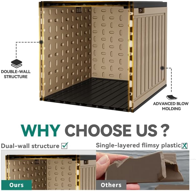 - DOUBLE-WALL CONSTRUCTION:Unique dual wall structure raises sturdiness & durability to the next level; All-weather guard resin pairs with wooden texture to imbue a natural touch for lasting outdoor use