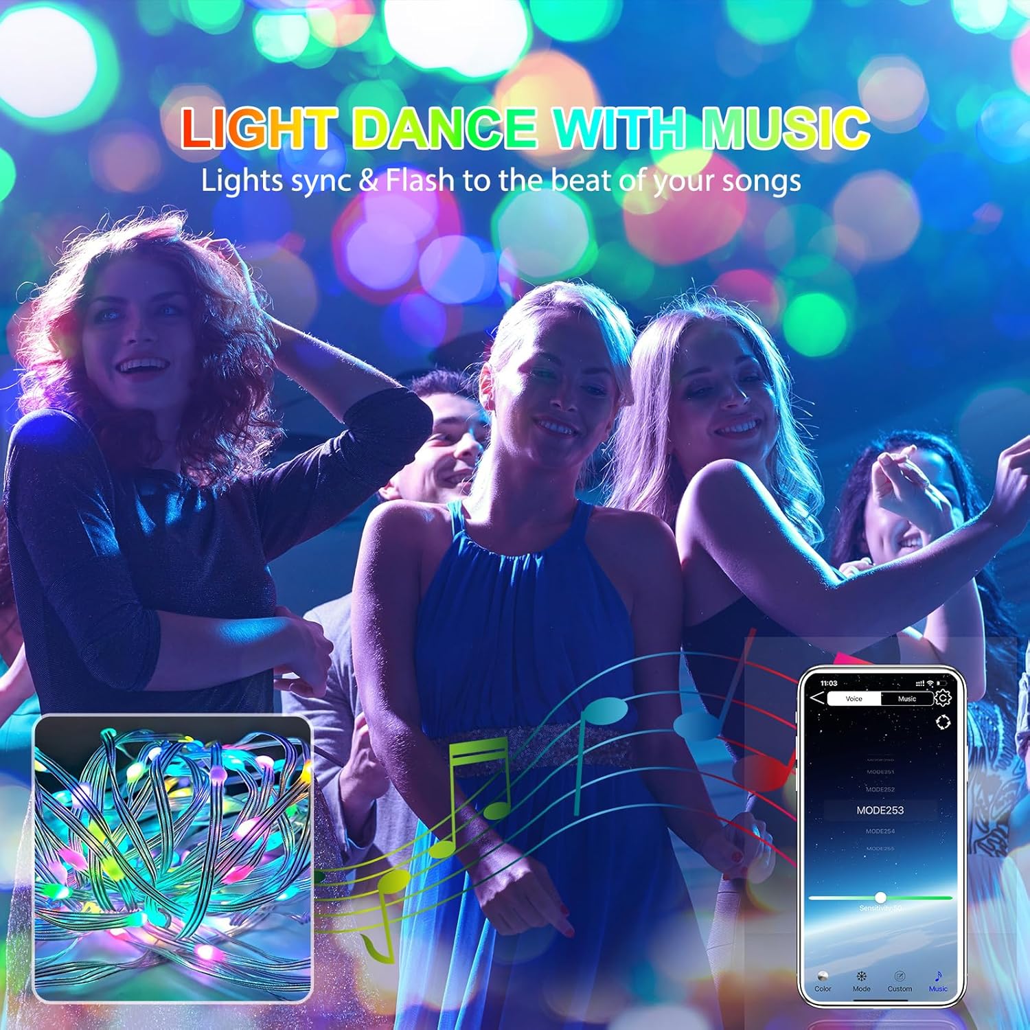 - Led Lights Sync To Music: The LED string lights have an intelligent music mode, and The Built-in high-sensitivity microphone(Inside the USB controller) will sync with any music coming out of any other speaker along with beats of music (or hands claps), lights color will change with the music beats, offering an immersive entertainment experience.