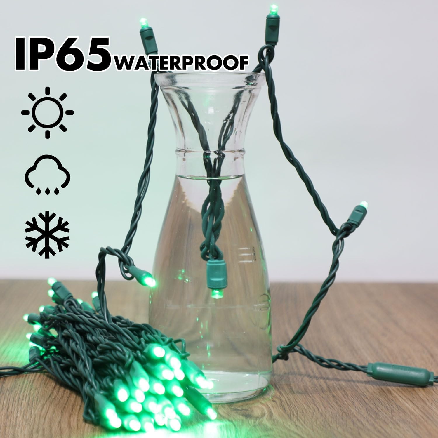 - One-Piece 5MM Commercial Decoration LIGHTS : 300ft 600 LED Lights (50 Lights 25ft X12Groups), 6-inch spacing. Green wires have a wide range of uses and are perfectly integrated with green plants or shrubs.no extra adapter is needed,bulbs are cool to touch,with the rectifier,keep the light steady (not twinkle).