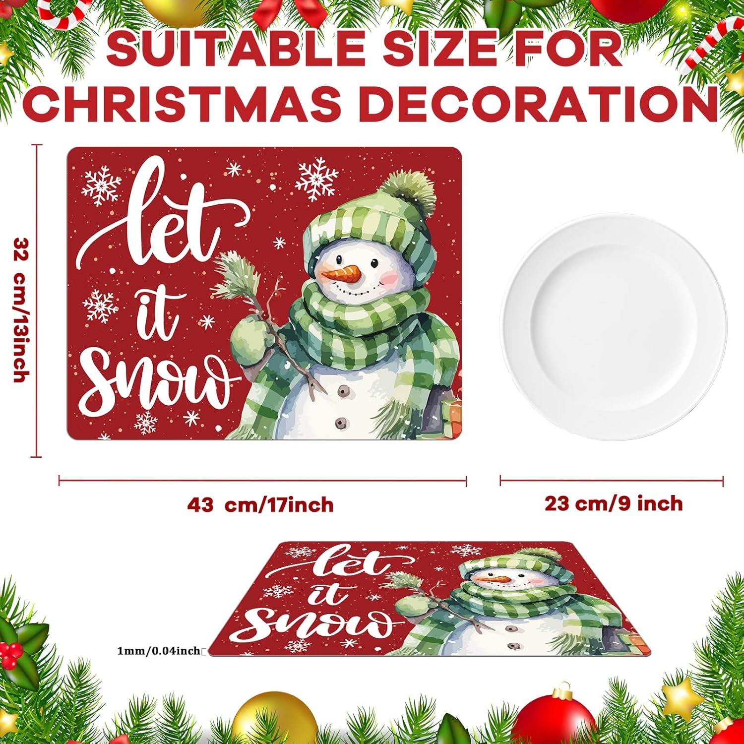 - 【Premium Material】Let It Snow dining table placemats are made of plastic material. Christmas dining table mats waterproof and heatproof, odorless and non-toxic, not easy to fade and deform, no wrinkles. Winter theme placemats can be applied many times, bringing you a pleasant dining experience.