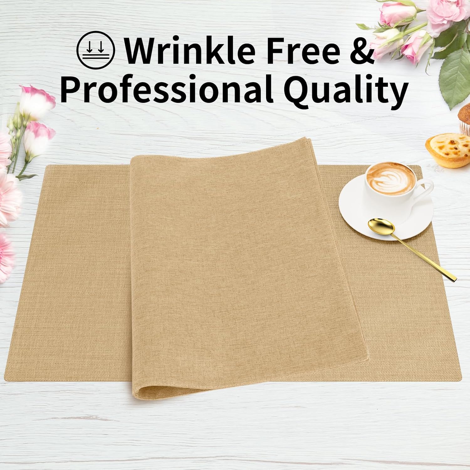 Cloth Placemats, Set of 6 Heat-Resistant Cotton Linen Blend Double Layered Machine Washable Place Mats, Wrinkle Free Thick Fabric Dining Table Mats for Indoors & Outdoors (Cream Beige, 6)
