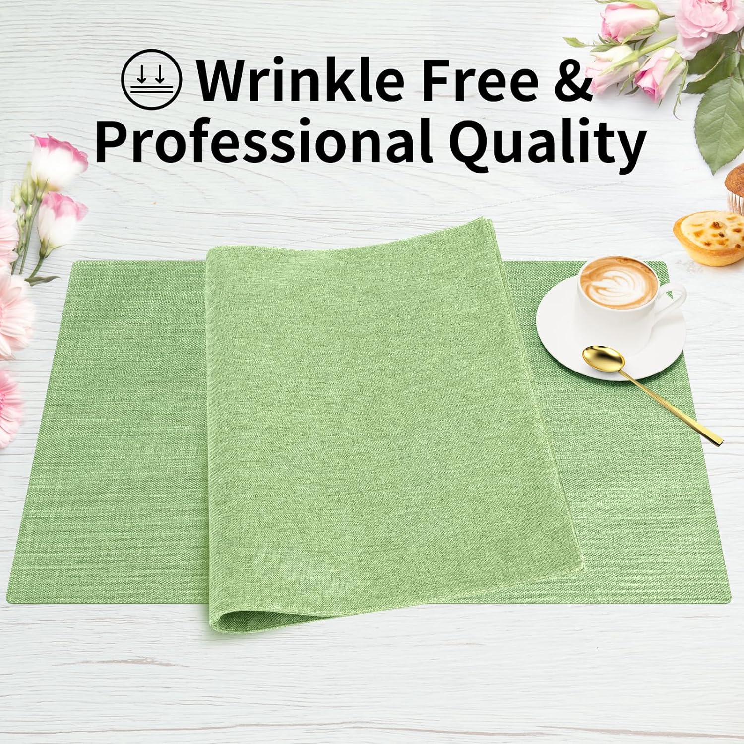 Cloth Placemats, Set of 4 Heat-Resistant Cotton Linen Blend Double Layered Machine Washable Place Mats, Wrinkle Free Thick Fabric Dining Table Mats for Indoors & Outdoors (Grass Green, 4)