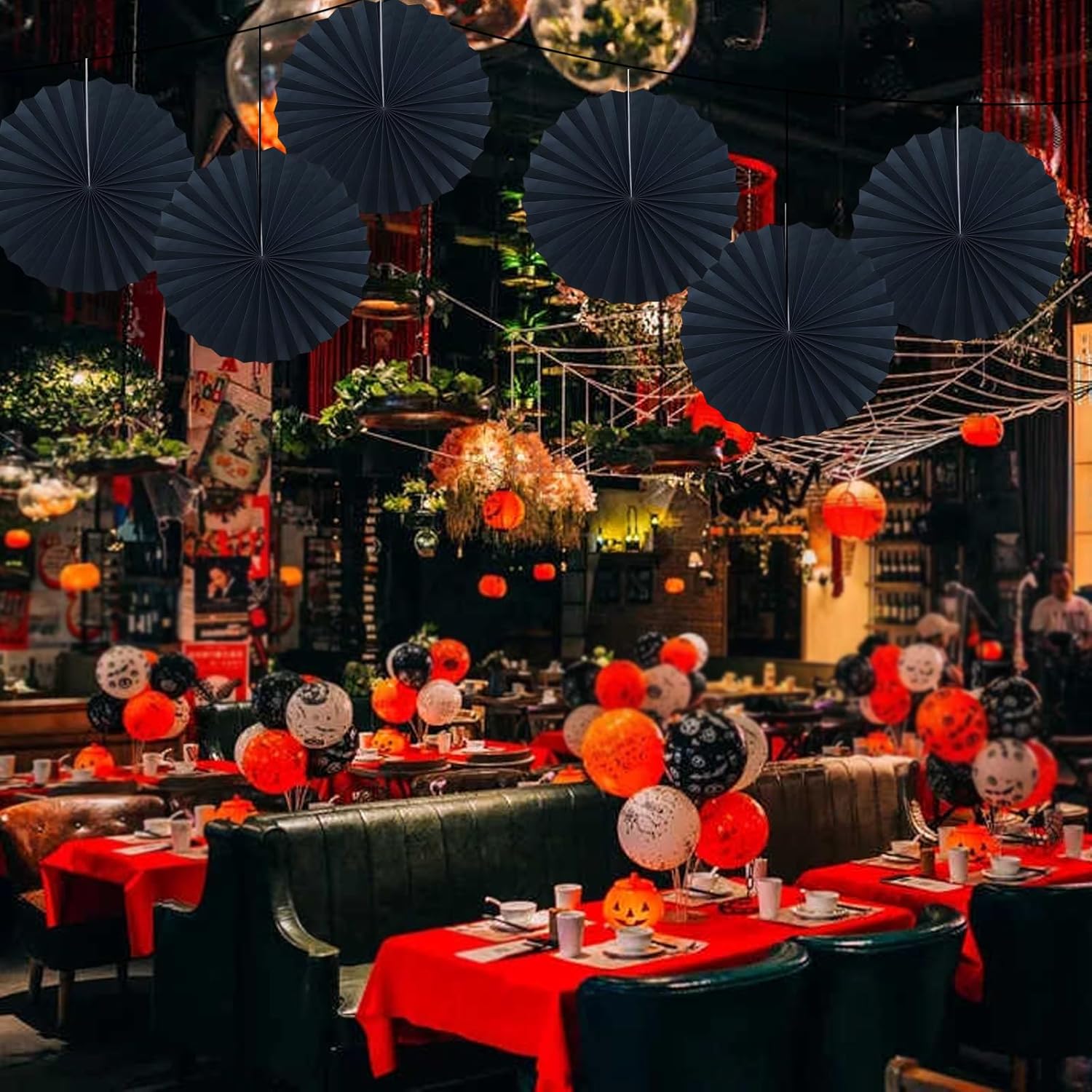 Black Party Decorations,Halloween Decor Events Accessories,Black Birthday Decorations,Anniversary Decorations for Party,Birthday Decorations for Men 16in Hanging Paper Fans 30 Color DIY Set(Black)