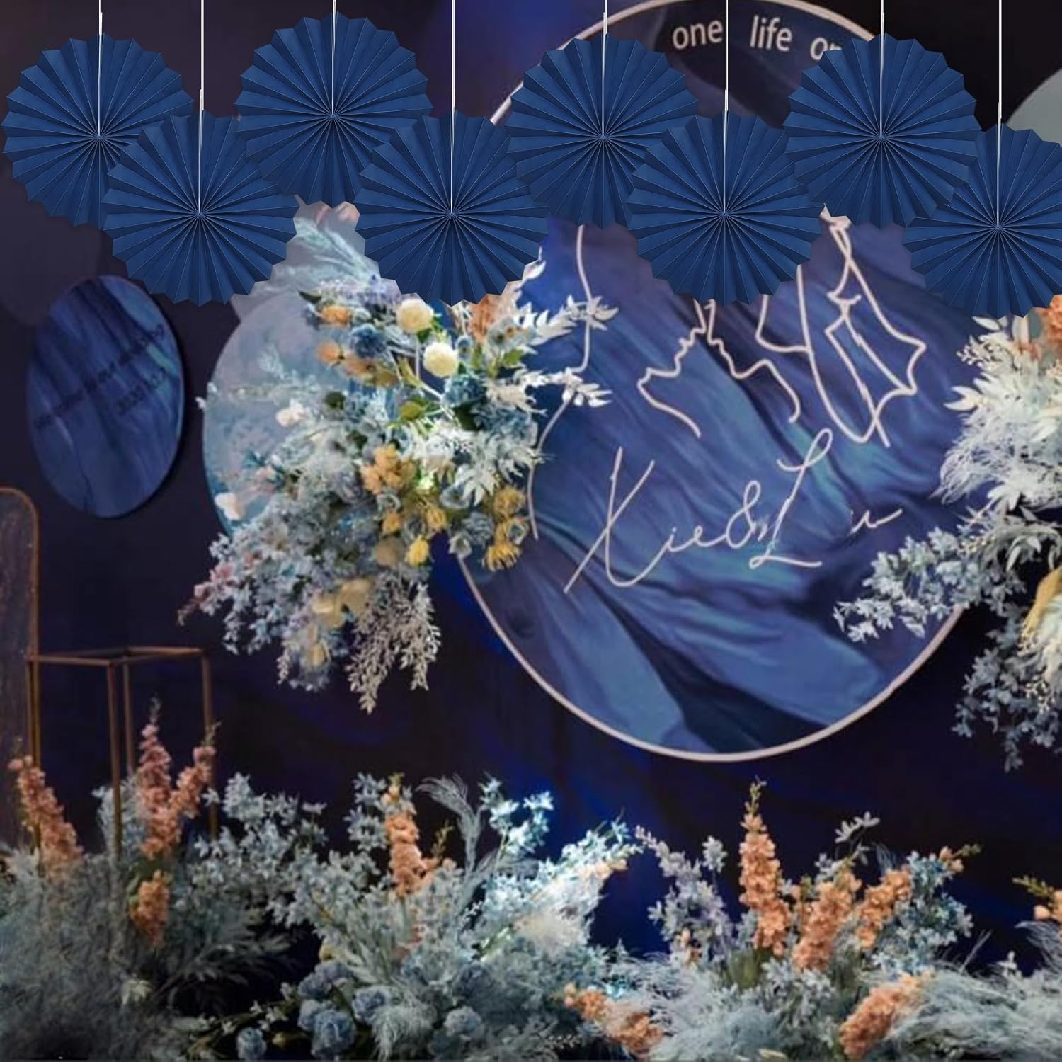 Blue Party Decorations,Blueberry Party Decorations Decorations Party Paper Fans Bulk 12in,Graduation Decoration Classroom Decor, Western Themed Party Decorations 30 Color DIY Set (Deep Blue)