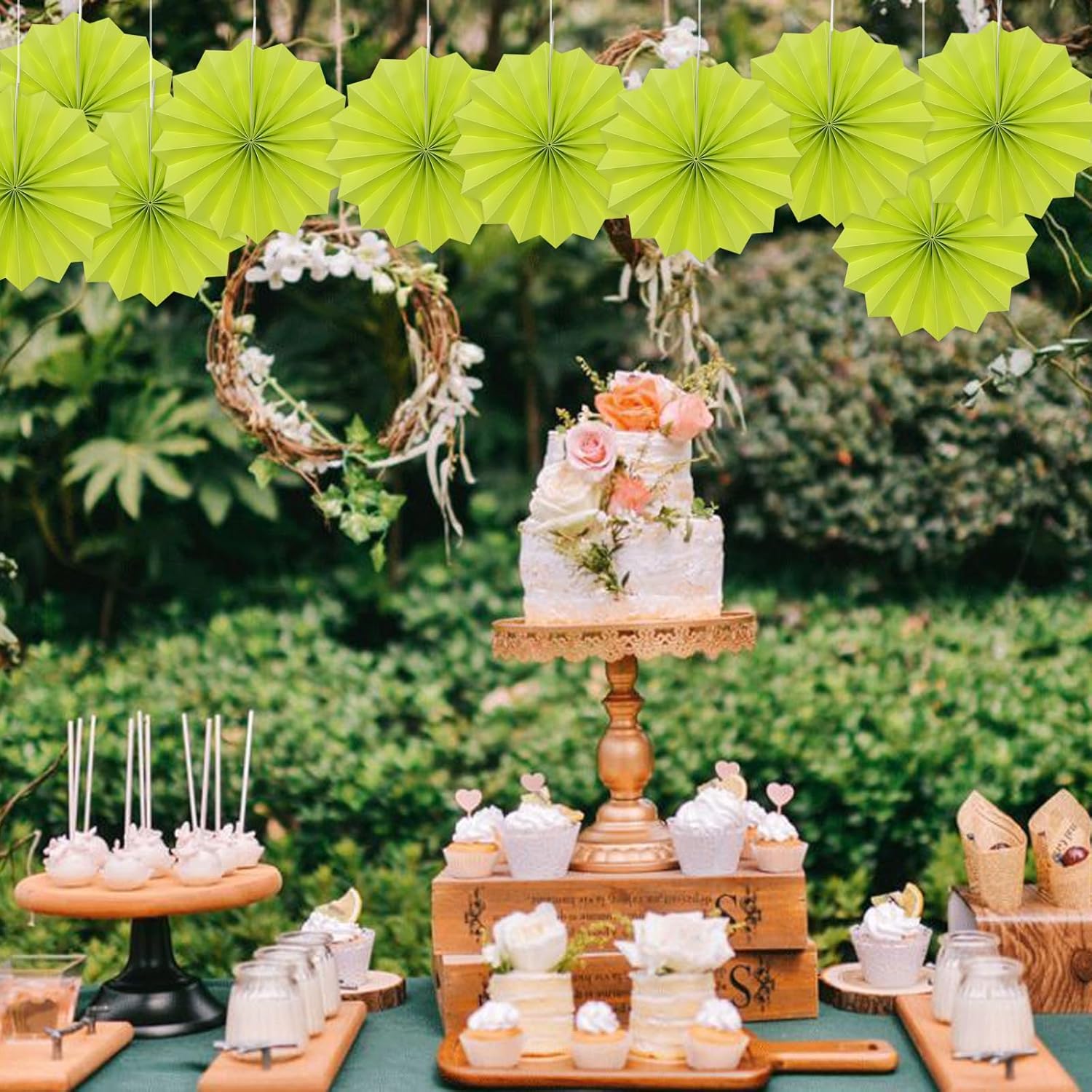 Green Graduation Party Decor,Tropical Party Decorations,Emerald Green Party Decorations,Hawaiian Themed Party Decorations,8in Hanging Paper Fans 30 Color DIY Set (Clear Green)