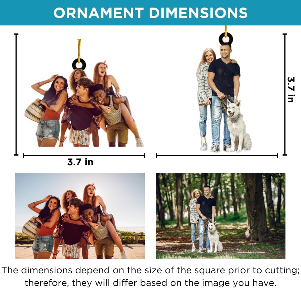 - š Custom Ornaments With Pictures: Crafted with high-quality acrylic, this ornament features a height of 3.7 inches (~9.5 cm) and a slim 0.12" thickness, ensuring its durability and lightweight design. The ornament can be customized with your photo, which makes it a truly personal and cherished gift. We include a hanging gold cord loop to easily hang on your Christmas tree or an ornament stand.