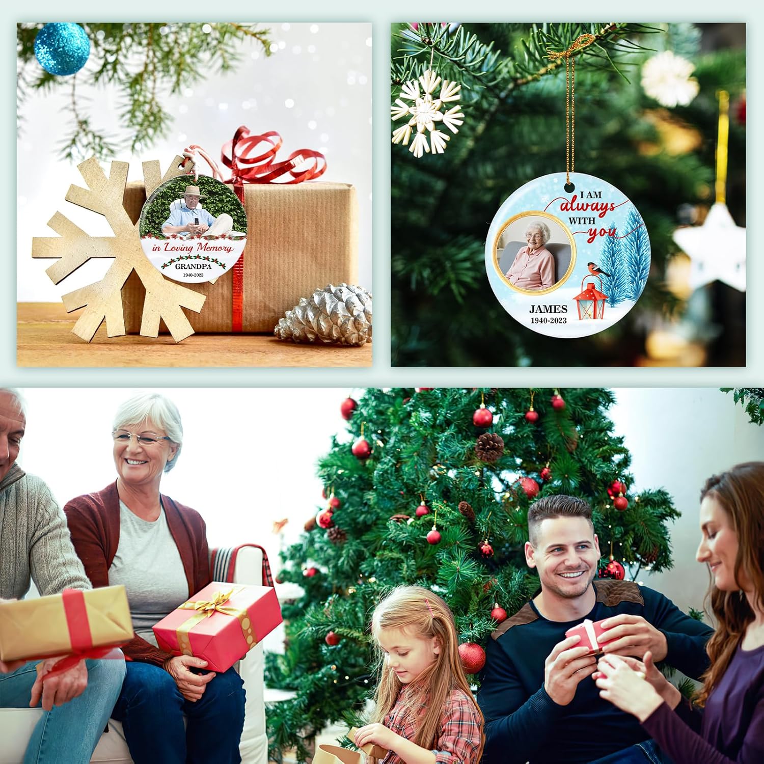 - 【Personalized Memorial Christmas Ornaments】This personalized Christmas ornament is completely customized to your needs! These Personalized Memorial Photo Ornaments are designed for you to feel together with your dear departed again around the Christmas Tree like you are used to