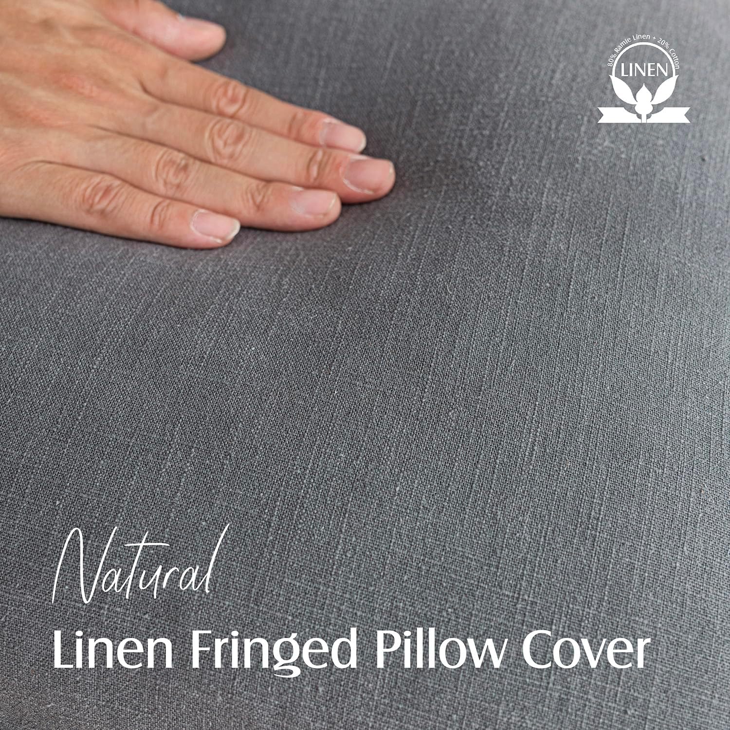 Foindtower Set of 2 Decorative Linen Fringe Throw Pillow Covers Cozy Farmhouse Boho Cushion Cover with Tassels Soft Accent Pillowcase for Couch Sofa Bed Living Room Home Decor 20×20 Inch Gray