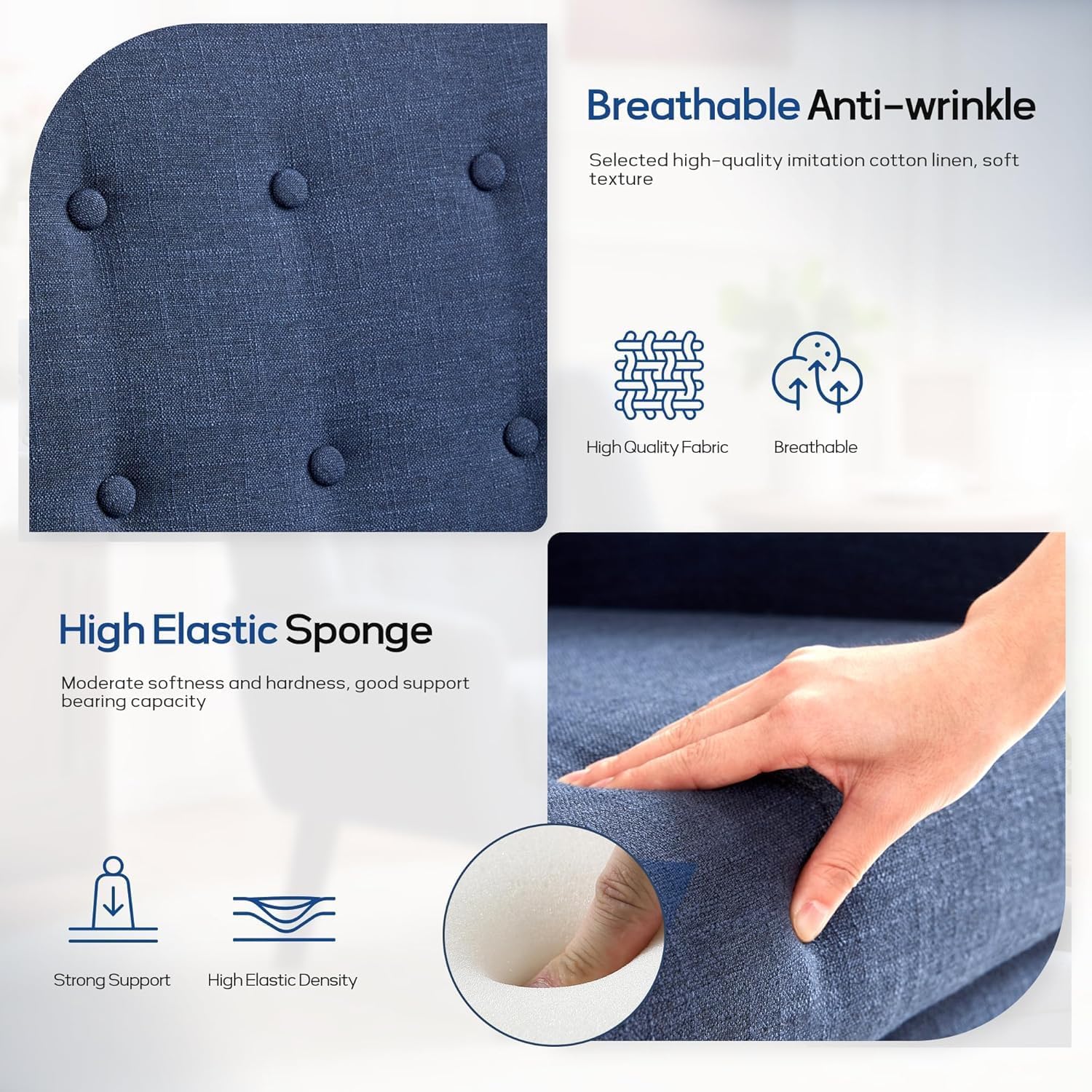 - Modern Style Design: The living room chair is designed with a simple and classic appearance to match any interior decoration style of your home. The tufted buttons of the living room chair back cushion are natural and the fabric is soft to the touch. Also available in six colors, adding a classic flair to your room is the versatile decorative chair you use