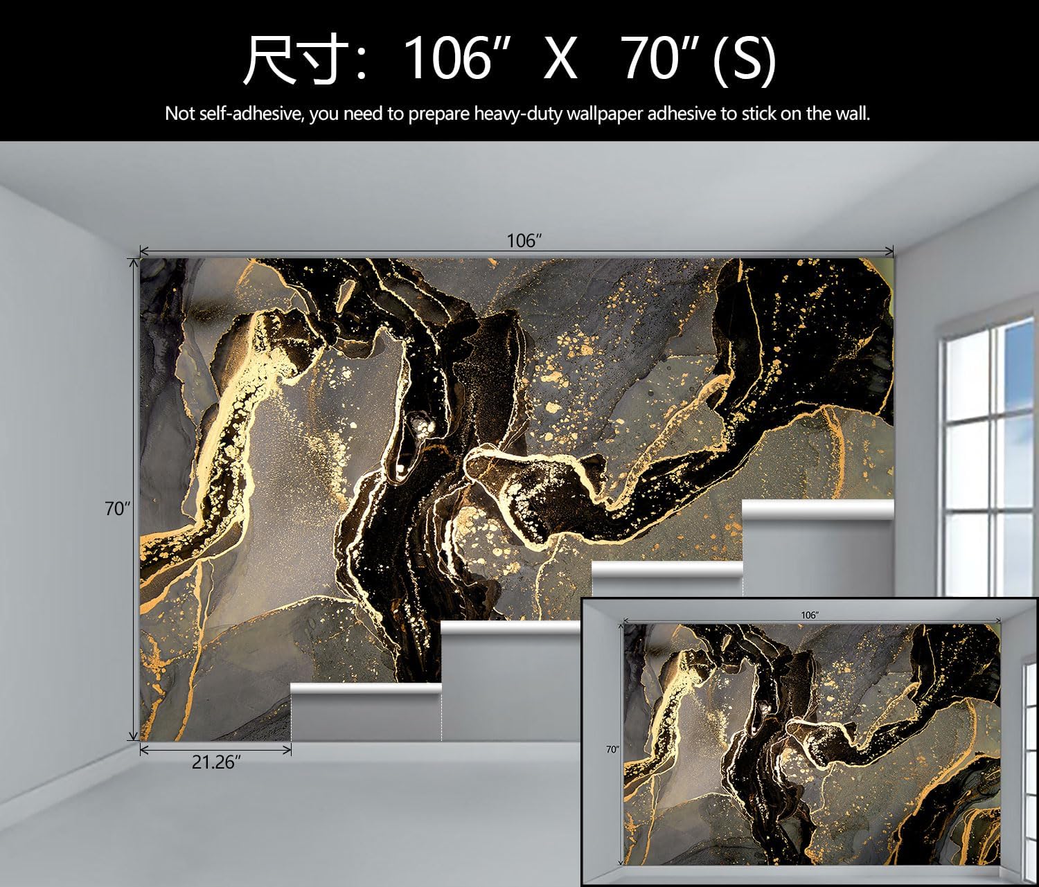 - Mural Size: The total size of this mural wallpaper is 106" x 70" / 270CM x 178CM (W x H), cut into 5 pieces, each measuring 21.26" x 70", for easy installation.