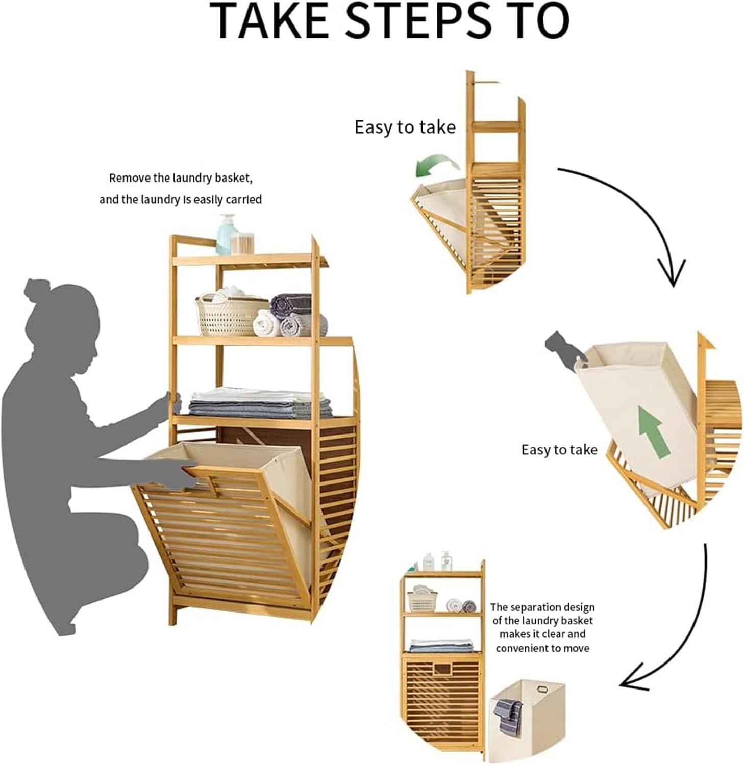 - 【Multifunctional Laundry】Featuring 2-in-1 design, three-tier storage shelves laundry hamper at the top provide ample space to store laundry supplies, toiletries or decor. Large capacity laundry basket at the bottom provides a large capacity for your clothes and towels.