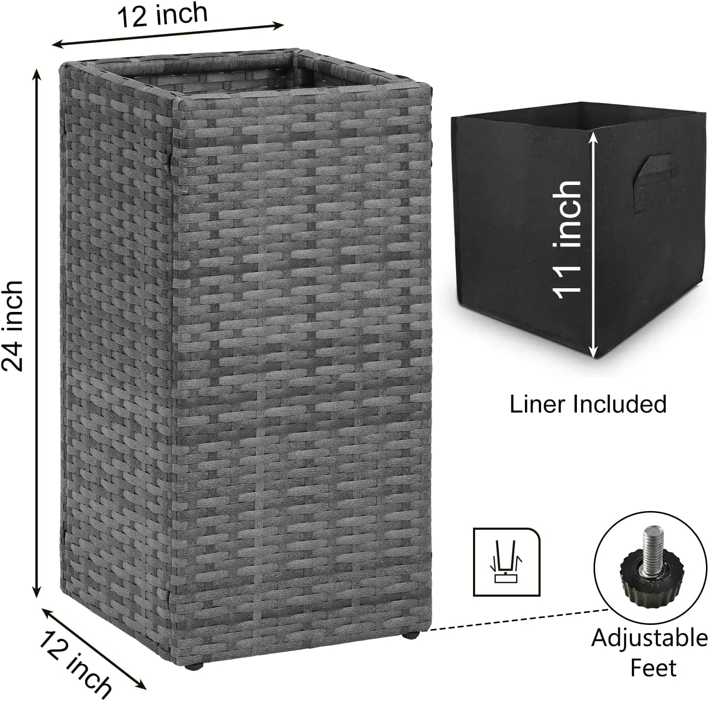 SUNNYPARK 2 Pack Tall Planters for Outdoor Plants Rattan Modern Tall Square Planter Box with Removable Liners Indoor Outdoor Porch Patio Flower Pot (12’’ x 12’’ x 24’’)