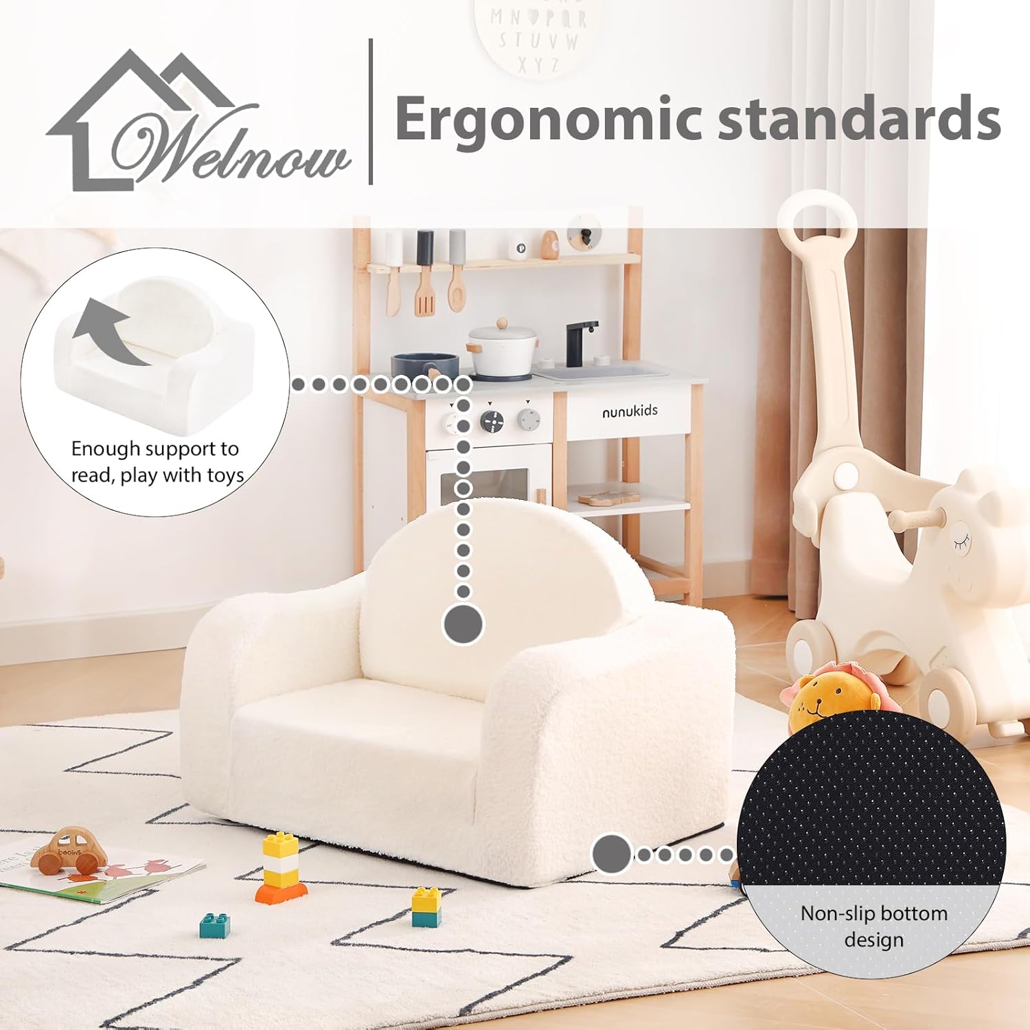 - ERGONOMIC ARMRESTS DESIGN: The armrests of this children's sofa are ergonomically designed to perfectly fit the curves of your child's arms. This thoughtful design ensures comfort during various activities. Elevate your child's relaxation and playtime with supportive and comfortable armrests.