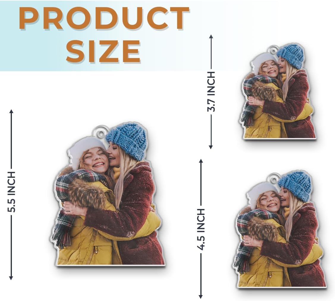 - š Custom Ornaments With Pictures: Crafted with high-quality acrylic, this ornament features a height of 3.7 inches (~9.5 cm) and a slim 0.12" thickness, ensuring its durability and lightweight design. The ornament can be customized with your photo, which makes it a truly personal and cherished gift. We include a hanging gold cord loop to easily hang on your Christmas tree or an ornament stand.