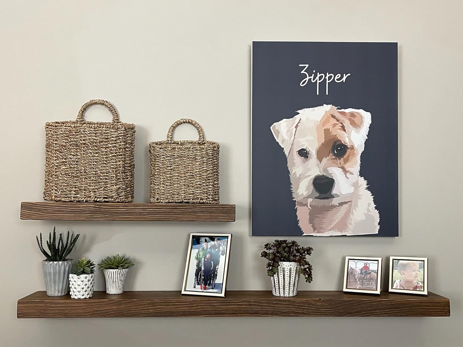- Elevate Your Space with Rustic Charm: Transform your living room or any space with our large floating shelves for wall. These 18 inch floating shelf beauties, crafted from natural wood, add a touch of rustic warmth and provide ample display space for your cherished items. These are a great depth for photos, and organizing small areas. NOTE: You need to be able to hit one wood stud toward the center of where you want to hang the shelf.