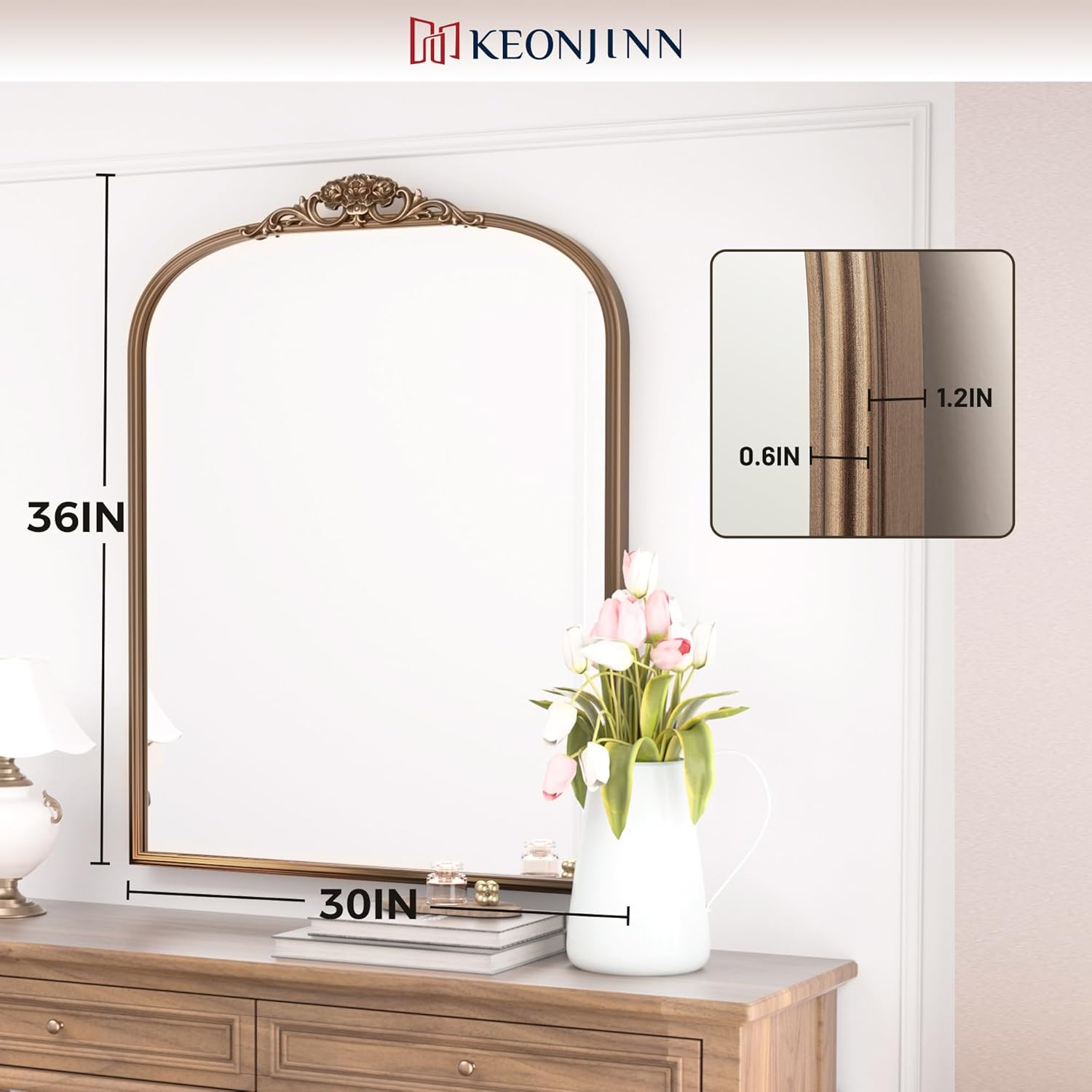 Keonjinn Gold Vintage Mirror 30" x 36", Antique Brass Mirrors for Wall Decor, Arched Decorative Mirror for Mantle, Hallway, Living Room, Fireplace, Bedroom, Bathroom Mirror with French Cleat Mounting