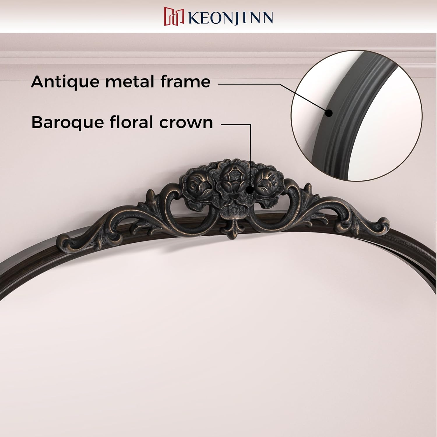- 【Baroque-inspired Charm】 Keonjinn Black Antique Arched Mirror is a timeless piece designed to elevate your wall décor. Inspired by the opulence of the Baroque era, this mirror exudes historical charm with its graceful arched design and intricate wooden floral crown, creating a captivating focal point in any room.