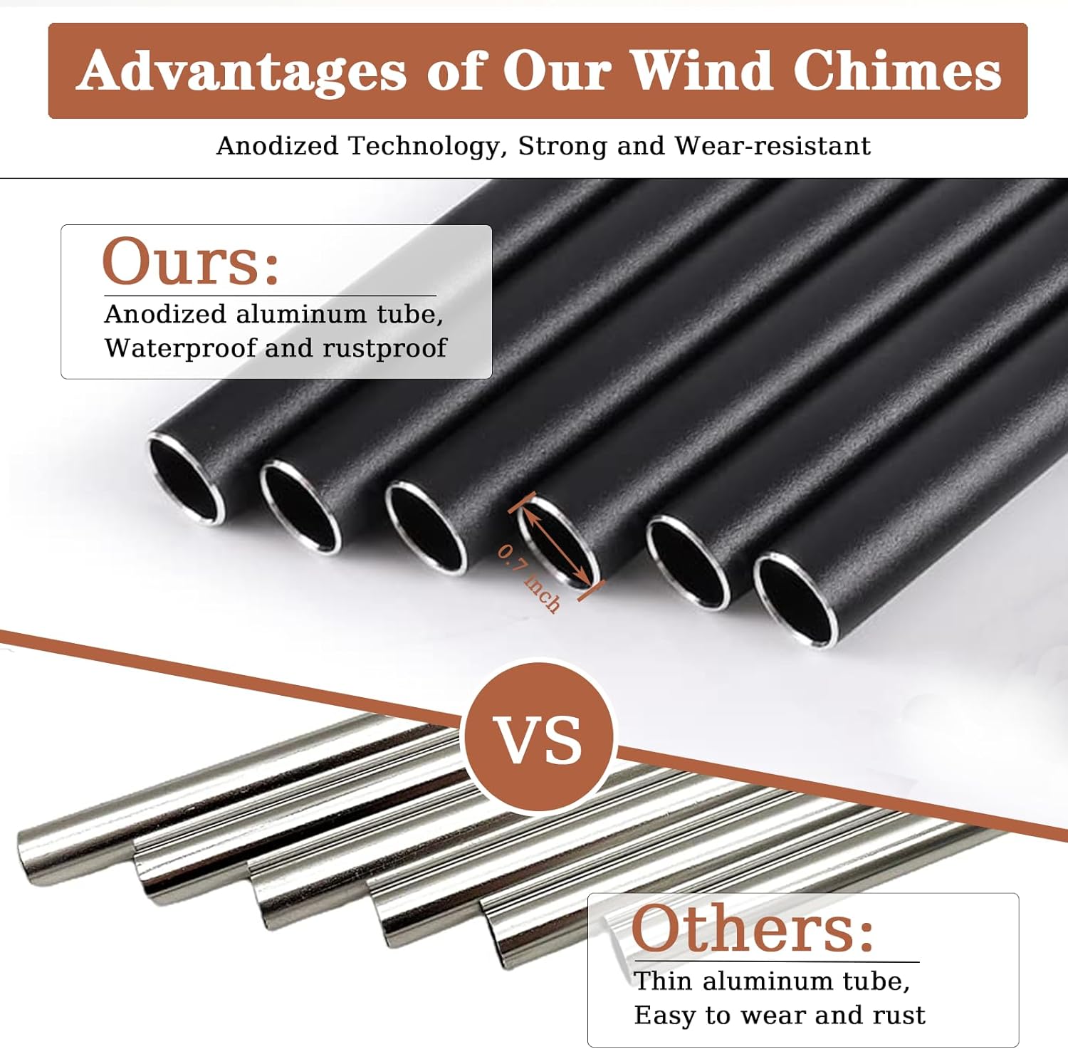 - Better Alternative than Flowers: Flowers will fade, but the memorial gift can last a long time. Compared to others' inferior wood planks, our memorial wind chime is made of high-quality pine wood which is sustainable and recyclable. The 6 black thickened aluminum tubes are made of anodized technology to make them lasting, waterproof, wear-resistant, and can withstand all kinds of bad weather.