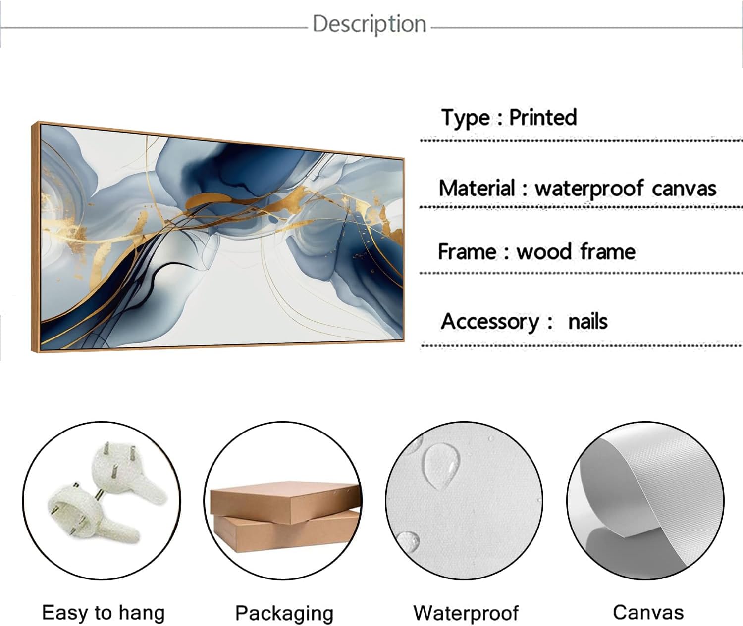 HUADAOART Abstract Painting Modern Art Wall Mural Gold And Blue Background Wall Decor for Living Room Bedroom Print on Artwork Home Decor Framed 30x60inch