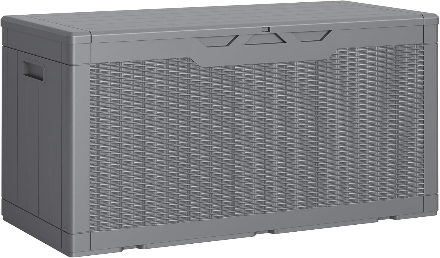 Greesum 100 Gallon Resin Deck Box Lockable Large Outdoor Storage Boxes for Garden Tools, Patio Furniture Cushions, Pool Supplies, Gray