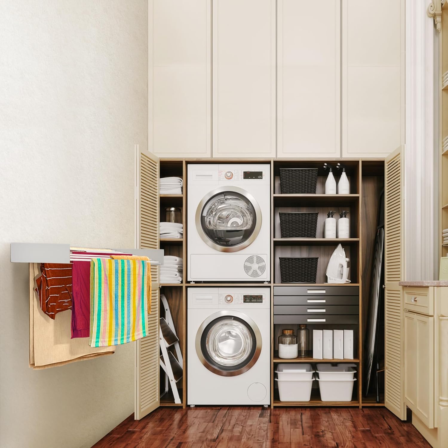 - LARGE DRYING SPACE & HEAVY WEIGHT CAPACITY: Our foldable laundry drying rack features 7 heavy-duty aluminum rods with 27 feet of linear hanging line and can hold up to 70 lbs weight.
