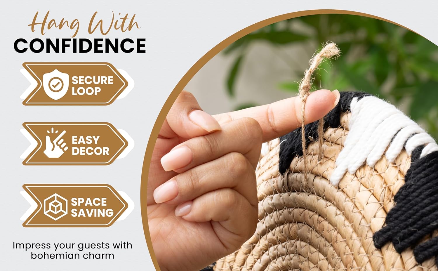 - ๐๐๐ง๐๐๐ซ๐๐๐ญ๐๐ ๐๐ฑ๐๐๐ฅ๐ฅ๐๐ง๐๐:Transform your room with our set of 5 unique bohemian woven wall decor baskets. Made from rattan, corn husks, and other natural materials. Each basket wall art brings texture and warmth to your space. Create a stunning accent wall, brighten a dull room, or add charm to an entryway with this versatile boho basket set, perfect for the bedroom, living room, office, or any special occasion.