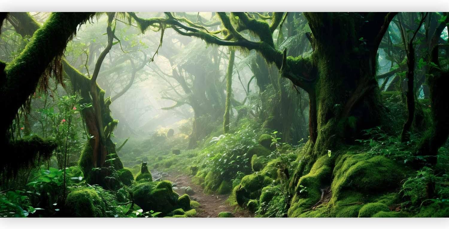 artgeist Premium Wall Mural Forest 216x98 in - Non-Woven Photo Wallpaper Art Print Fleece Wall Mural Decoration Poster Trees Forest Moss Mystery c-B-10183-a-a