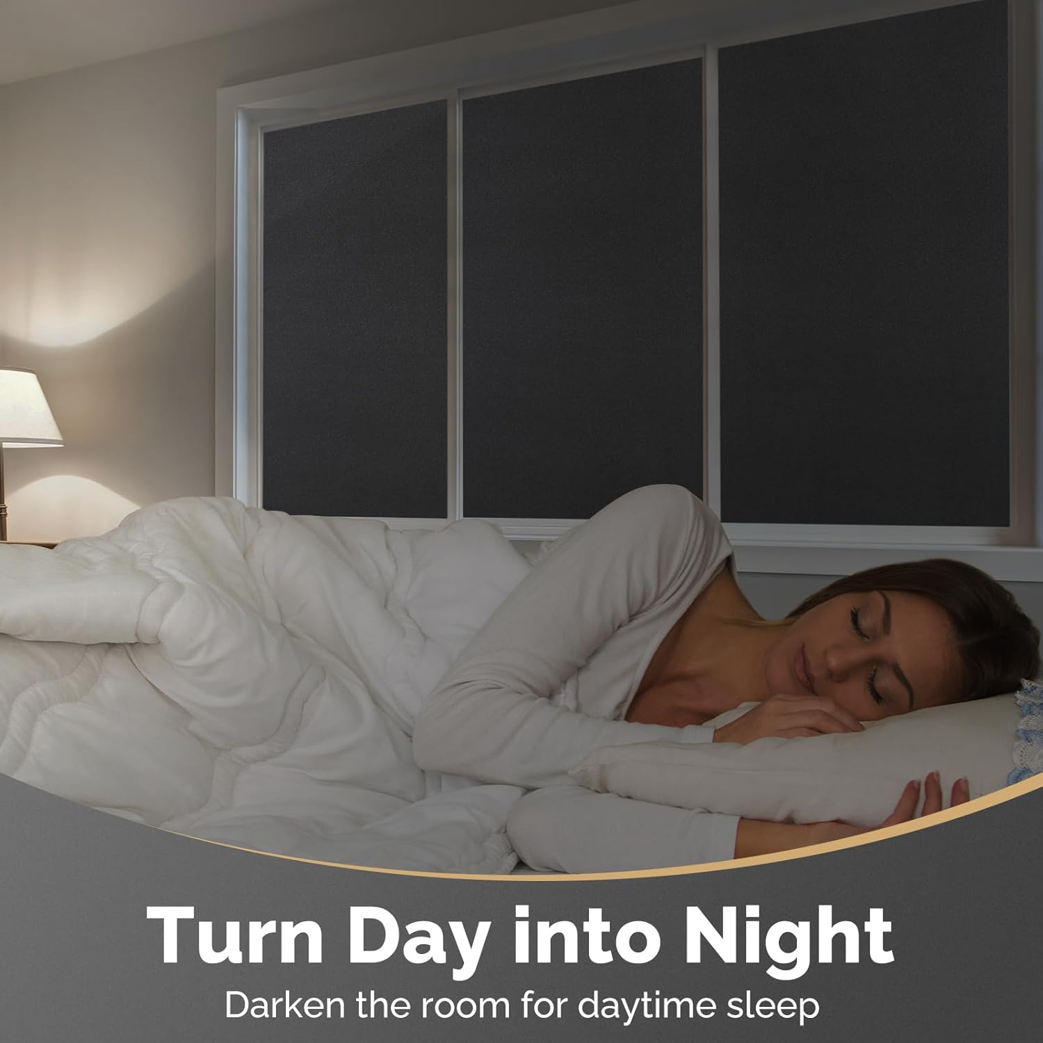 DOWELL Blackout Window Film, 100% Light Sun Blocking Static Cling Frosted Privacy Film for Glass, Heat Control Removable Window Tint, Room Darkening Cover for Day Sleep, Black, 35.4" x 78.5"